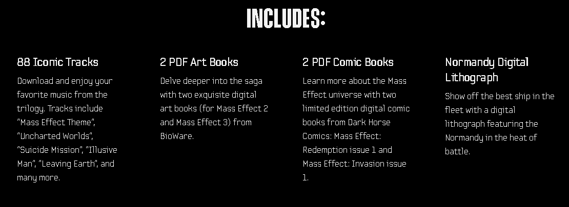 We're giving fans a chance to download content previously available in the Deluxe Editions of Mass Effect 2 and Mass Effect 3, as well as the first Mass Effect soundtrack (including the new Legendary Edition Track: "Resynthesis").